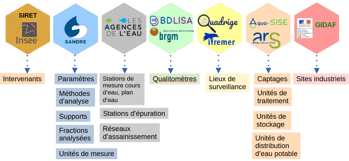 Le standard EDILABO s'appuie sur un ensemble de référentiels nationaux administrés par divers établissements, et dont les objets de référence diffèrent selon la thématique de l'eau abordée (suivi de la qualité des mileux aquatiques, assainissement urbain ou industriel, suivi qualitatif de l'eau destinée à la consommation humaine).
