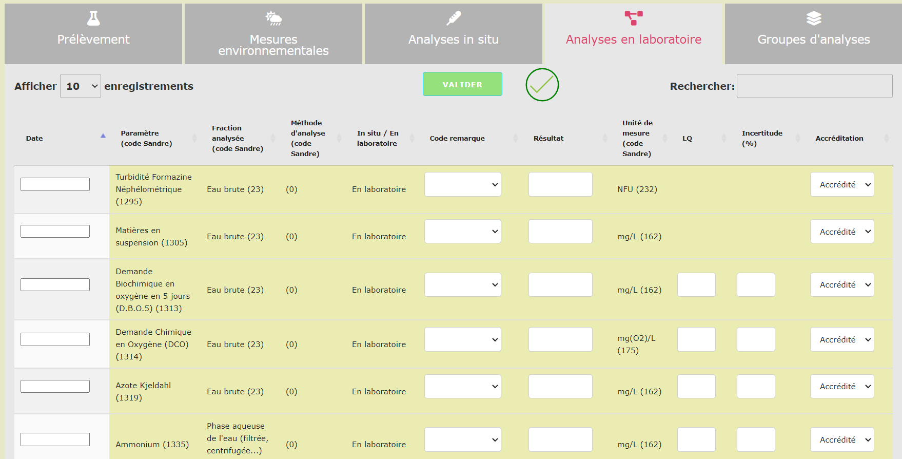 - Interfaces fluides et conviviales de consultation et de recherche de données de référence (paramètres SANDRE, méthodes d'analyses,...)